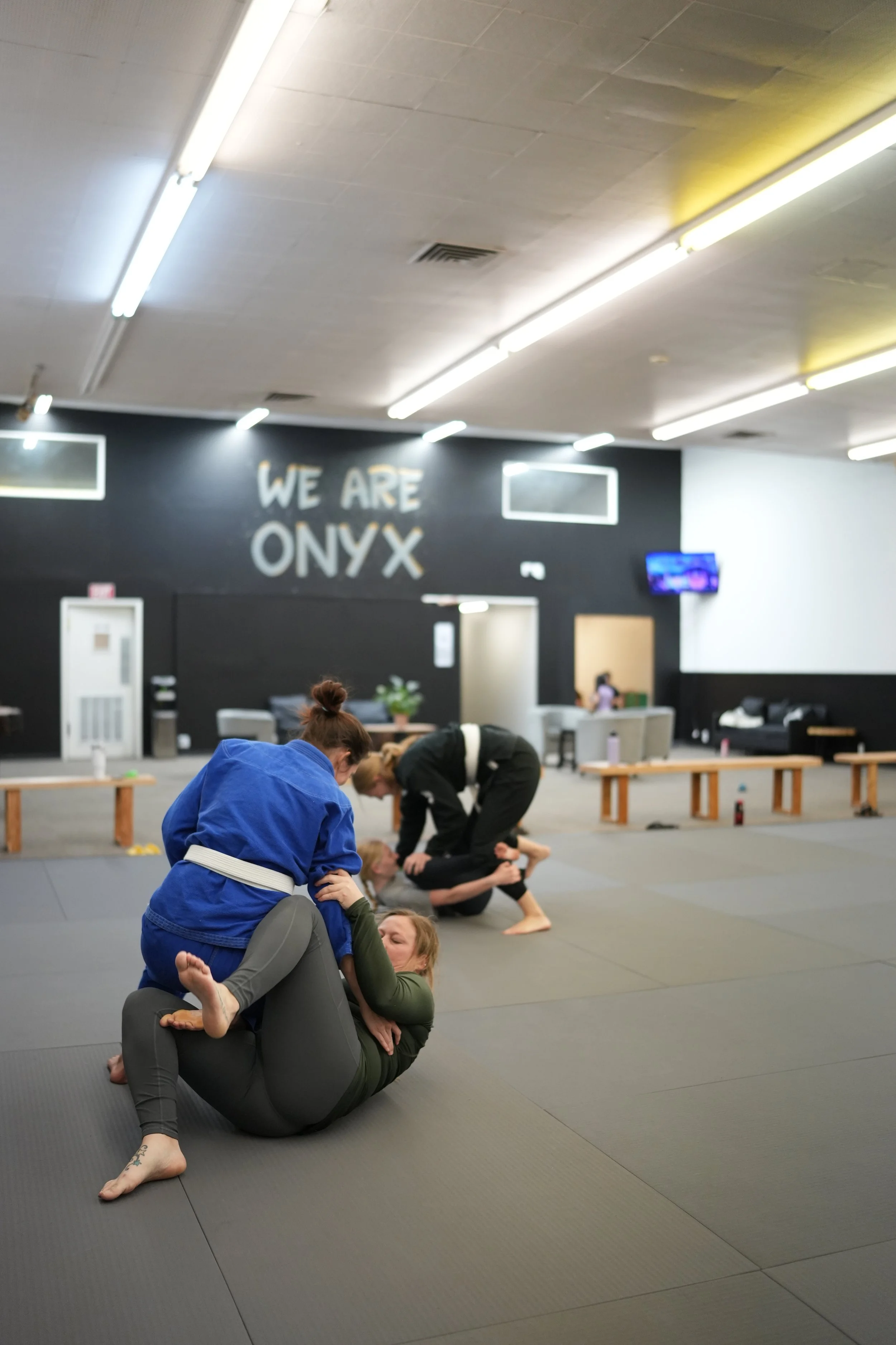 And when class ends, the mats stay open. The lounge is alive. Matches play on the TVs. Conversations keep going. This is what We Are Onyx means — a place that feels like home, and a team that feels like family.